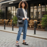 Les détails en cuir marron foncé ou similicuir, tels que la bande traversant le coup-de-pied et les bordures soignées, ajoutent une touche d’élégance classique qui contraste joliment avec le motif animalier. La semelle extérieure épaisse et crantée, de couleur noire, assure une excellente adhérence et confère une allure moderne et robuste. Cette plateforme offre non seulement un gain de hauteur subtil mais aussi un confort accru pour une marche prolongée.