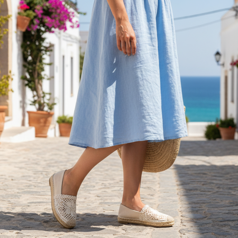 L’espadrille « Fleur de Lin » Brodé est incroyablement polyvalente. Elle se marie parfaitement avec une robe d’été fluide, un jean décontracté, un short en lin ou même une jupe midi. Sa palette de couleurs neutres la rend facile à associer avec n’importe quelle tenue, ajoutant une touche d’élégance naturelle et de fraîcheur. C’est la chaussure parfaite pour celles qui cherchent à combiner confort, style et un soupçon de romantisme bohème.